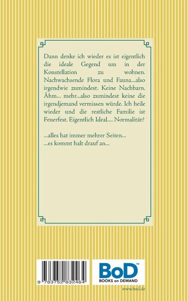 Dann denke ich wieder es ist eigentlich die ideale Gegend, um in der Konstellation zu wohnen. Nachwachsende Flora und Fauna ... also irgendwie zumindest. Keine Nachbarn. Ähm ... mehr ... also zumindest keine, die irgendjemand vermissen würde. Ich heile wieder und die restliche Familie ist feuerfest. Eigentlich ideal ... Normalität?... alles hat immer mehrere Seiten ...... es kommt halt drauf an ...