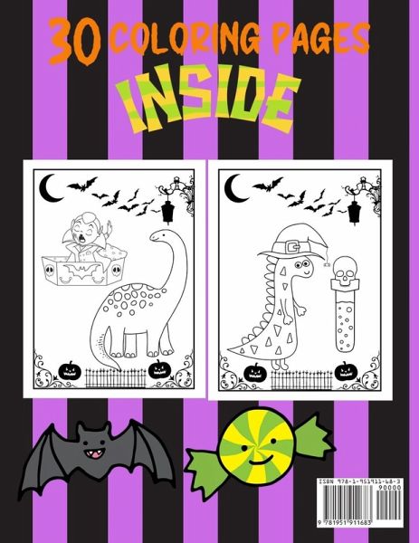 Halloween dinosaurs coloring book for kids ages 4-8 Easy and simple to color dinosaurs, ghosts, zombies, mummies, witches and vampires for a fun family time this Halloween! Do your kids love dinos? Then look no further, this is the perfect Halloween coloring book for them! This is the best coloring book for prehistoric creatures lovers. In this Big size coloring book, kids will color cool and monsters from Jurassic era while they have fun during Halloween with candies and kid friendly monsters of this great spooky festival. Easy to color dinos and monsters along with many more Halloween items! Simple drawings for a relaxing coloring experience this Halloween. Spend some fun quality family time while eating candies and coloring the 30 unique coloring pages inside this jumbo Halloween coloring book. Your kid will love the cute dinos illustrations as well as the kid friendly Halloween monsters inside and you will for sure distract them from eating too many candies! Book features:Big Size coloring book of 8.5 x 11 Inches 30 unique (no repeats) Halloween cool monsters and dinosaurs coloring pages, each with different illustrations for hours of coloring fun! Glossy cover so even if children are messy with candies, it's easy to wipe it clean Single-sided pages to make sure coloring does not stain the illustrations behind it. (no bleed-through) Beautiful art and drawings yet simple enough for all skill levels. Printed on High Quality solid white paper It's never to early to get a great Halloween book. The spooky season is soon so give yourself a treat WITHOUT the tricks and buy this coloring book today! Happy Halloween!