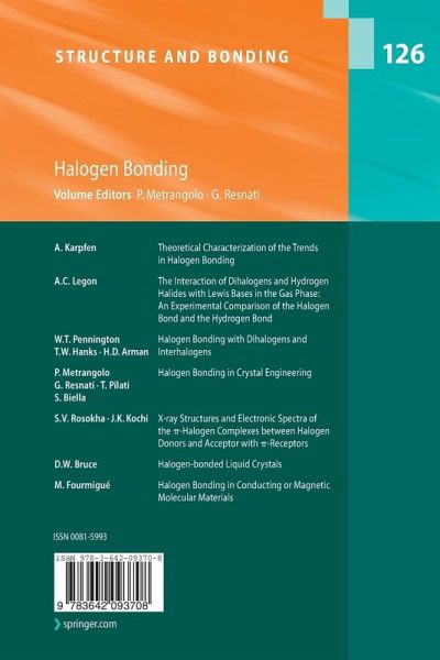 From the reviews: "The articles in this volume specifically address halogen bonding, and two aspects of it ... . The contributions to this volume are reasonably up-to-date ... . each chapter begins with a detailed table of contents and most of them also provide a list defining abbreviations. In summary, this is a very useful book that contains a great deal of information. I can certainly recommend it." (Peter Politzer, Journal of the American Chemical Society, Vol. 130 (31), 2008)