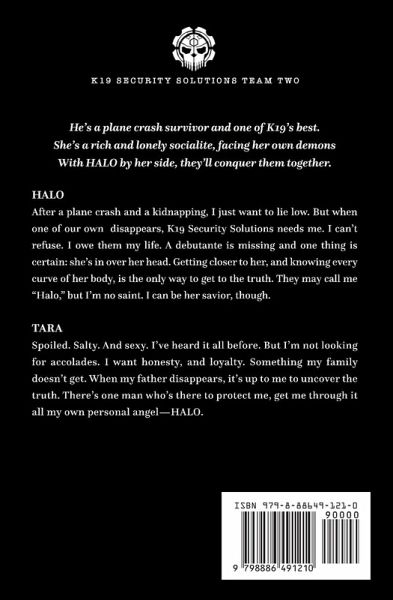 He's a plane crash survivor and one of K19's best. She's a rich and lonely socialite, facing her own demons With HALO by her side, they'll conquer them together. HALO After a plane crash and a kidnapping, I just want to lie low. But when one of our own disappears, K19 Security Solutions needs me. I can't refuse. I owe them my life. A debutante is missing and one thing is certain: she's in over her head. Getting closer to her, and knowing every curve of her body, is the only way to get to the truth. They may call me "Halo," but I'm no saint. I can be her savior, though. TARA Spoiled. Salty. And sexy. I've heard it all before. But I'm not looking for accolades. I want honesty, and loyalty. Something my family doesn't get. When my father disappears, it's up to me to uncover the truth. There's one man who's there to protect me, get me through it all my own personal angel-HALO. While each book in the K19 Security Solutions series is a standalone with its own HEA, they may be more enjoyable read in order.