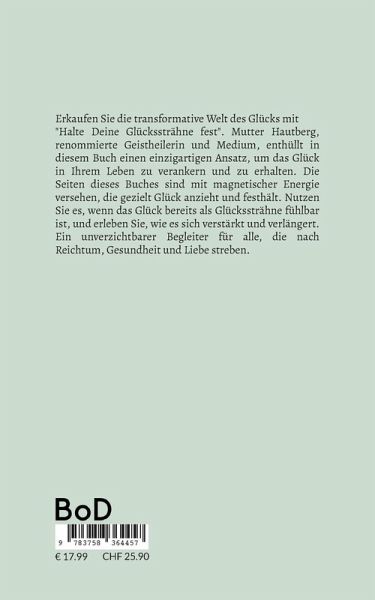 Erkaufen Sie die transformative Welt des Glücks mit "Halte Deine Glückssträhne fest". Mutter Hautberg, renommierte Geistheilerin und Medium, enthüllt in diesem Buch einen einzigartigen Ansatz, um das Glück in Ihrem Leben zu verankern und zu erhalten. Die Seiten dieses Buches sind mit magnetischer Energie versehen, die gezielt Glück anzieht und festhält. Nutzen Sie es, wenn das Glück bereits als Glückssträhne fühlbar ist, und erleben Sie, wie es sich verstärkt und verlängert. Ein unverzichtbarer Begleiter für alle, die nach Reichtum, Gesundheit und Liebe streben.