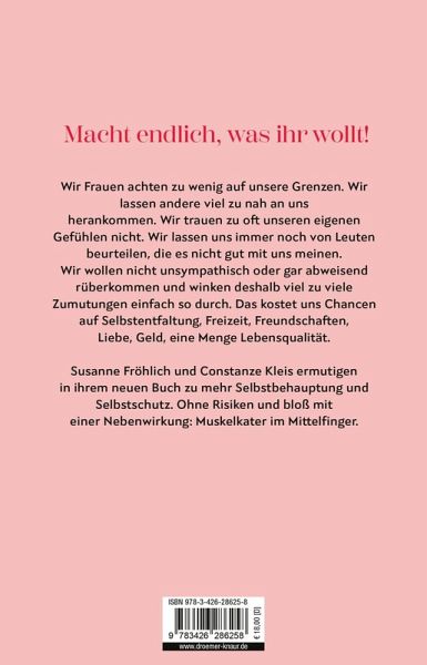 Ja, wir Frauen können wählen: Entweder still und meist vergeblich auf Respekt, Verständnis und Lastenausgleich hoffen. Oder beanspruchen, was uns zusteht. Klar, da gibt es immer noch einige innere und äußere Widerstände zu überwinden. Kein Problem mit dem emotionalen Superfood für die weibliche Selbstbehauptung, das Susanne Fröhlich und Constanze Kleis mit ihrem neuen Buch abliefern. Selbstverständlich mit dem Mittelfinger geschrieben.