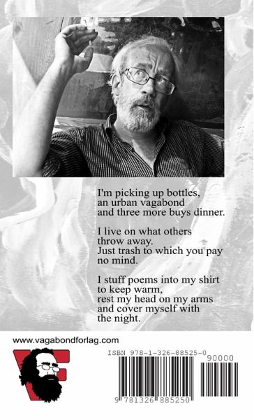 I'm picking up bottles, an urban vagabond and three more buys dinner. I live on what others throw away. Just trash to which you pay no mind. I stuff poems into my shirt to keep warm, rest my head on my arms and cover myself with the night.