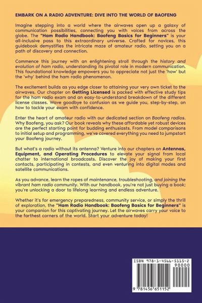 Embark on a Radio Adventure: Dive into the World of Baofeng Imagine stepping into a world where the airwaves open up a galaxy of communication possibilities, connecting you with voices from across the globe. The "Ham Radio Handbook: Baofeng Basics for Beginners" is your all-inclusive pass to this extraordinary universe. Crafted for novices, this guidebook demystifies the intricate maze of amateur radio, setting you on a path of discovery and connection. Commence this journey with an enlightening stroll through the history and evolution of ham radio, understanding its pivotal role in modern communication. This foundational knowledge empowers you to appreciate not just the 'how' but the 'why' behind the ham radio phenomenon. The excitement builds as you edge closer to attaining your very own ticket to the airwaves. Our chapter on Getting Licensed is packed with effective study tips for the ham radio exam and an easy-to-understand breakdown of the different license classes. Wave goodbye to confusion as we guide you, step-by-step, on how to tackle your exam with confidence. Enter the heart of amateur radio with our dedicated section on Baofeng radios. Why Baofeng, you ask? Our book reveals why these affordable yet robust devices are the perfect starting point for budding enthusiasts. From model comparisons to initial setup and programming, we've covered everything you need to jumpstart your Baofeng journey. But what's a radio without its antenna? Venture into our chapters on Antennas, Equipment, and Operating Procedures to elevate your signal from local chatter to international broadcasts. Discover the joy of making your first contacts, participating in contests, and even venturing into digital modes and satellite communications. As you advance, learn the ropes of maintenance, troubleshooting, and joining the vibrant ham radio community. With our handbook, you're not just buying a book; you're unlocking a door to lifelong learning and endless adventure. Whether it's for emergency preparedness, community service, or simply the thrill of exploration, the "Ham Radio Handbook: Baofeng Basics for Beginners" is your companion for this captivating journey. Let the airwaves carry your voice to the farthest corners of the world. Start your adventure today!