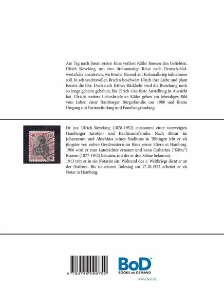 Am Tag nach ihrem ersten Kuss, am 18.1.1906, verlässt Käthe Roosen den Geliebten, Ulrich Sieveking, um eine dreimonatige Reise nach Deutsch-Südwestafrika anzutreten, wo ihr Bruder Berend am Kolonialkrieg teilnehmen soll. In sehnsuchtsvollen Briefen beschwört Ulrich ihre Liebe und plant bereits die Ehe. Doch nach Käthes Rückkehr nach Hamburg wird die Beziehung noch so langen geheim gehalten, bis Ulrich eine feste Anstellung in Aussicht hat. Ulrichs weitere Briefe an Käthe geben ein lebendiges Bild vom Leben einer Hamburger Bürgerfamilie um 1900 und ihrem Umgang mit Partnerfindung und Familiengründung.