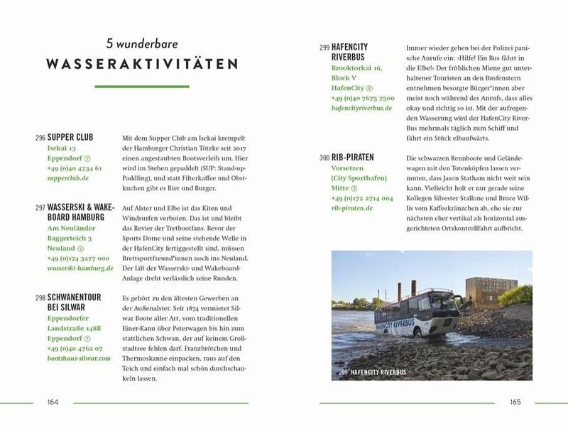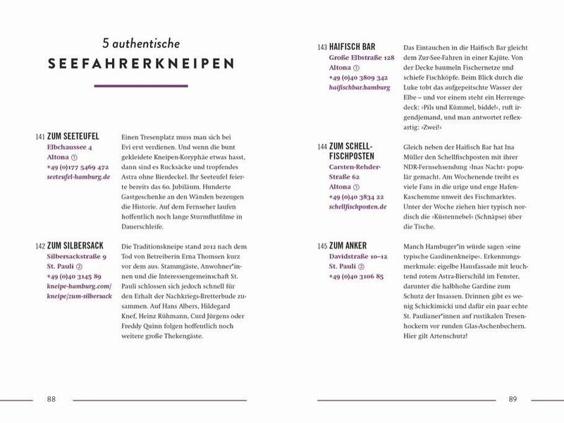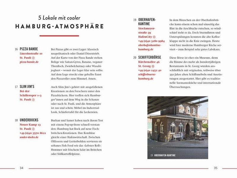 Wenn Sie Ihren City Trip durch Hamburg ohne Warteschlangen und Touristennepp genießen möchten, ist dieser Reiseführer goldrichtig. 500 außergewöhnliche Orte, Restaurants, Läden und Museen, die Sie so in keinem anderen Reiseführer finden. Hier finden Sie die besten Tipps und Adressen, denn hier werden ausschließlich unabhängige Empfehlungen der Locals verraten, die auf sorgfältigen Recherchen und persönlichen Erfahrungen des einheimischen Autors basieren. Mit Karten und vielen Fotos erleben Sie die Stadt, wie sie sonst nur die Einheimischen kennen.Entdecken Sie in Hamburg zum Beispiel:5 Restaurants, in denen die Locals abhängenDie 5 letzten kreativen Zufluchtsorte der StadtDie 5 besten Läden für Zeitschriften und Bücher5 authentische Hafen-Bars... und vieles mehr. Freuen Sie sich insgesamt auf:95 Orte zum Essen55 Orte für einen Drink70 Orte, um das richtige Hamburg zu entdecken50 Orte für Kulturgenuss25 Dinge, die man mit Kindern unternehmen kann20 Orte zum Übernachten40 Aktivitäten fürs Wochenende20 Fakten, die man unbedingt über Hamburg wissen muss