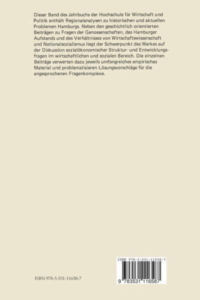 Wirtschaftswissenschaft und Nationalsozialismus in Hamburg - eine erste Skizze.- Der Aufstand der KPD 1923.- Die Entwicklung der Hamburger Konsumentenorganisation "PRO" vom Kon-sumverein zur Aktiengesellschaft.- Presse und Meinungsbildung am Beispiel des Hamburger Bürgerschaftswahl-kampfes 1982.- Hamburger Entwicklungs- und Planungsprobleme in der Region Unterelbe.- Wirtschaftsförderung und Standortwahl von Unternehmen - dargestellt am Beispiel Hamburgs.- Krise des Schiffbaus - Krise der Schiffbauförderung?.- Rationalisierung und Gegenwehr in der Hamburger Metallindustrie am Beispiel der Systeme vorbestimmter Zeiten.- Probleme einer aktiven Arbeitsmarktpolitik in Hamburg.- Verkehrsunfallfolgen in der sozialökonomischen Rechnungslegung - dargestellt am Beispiel der Verkehrsunfälle von Kindern in Hamburg.- Beschäftigungsperspektiven des Hamburger Dienstleistungssektors.- Bürokratie im Abseits.- Ausländische Arbeitnehmer in Hamburg.- Tendenzen der Ausländerpolitik in der BRD und in Hamburg.- Politische Orientierung Hamburger Jugendlicher.
