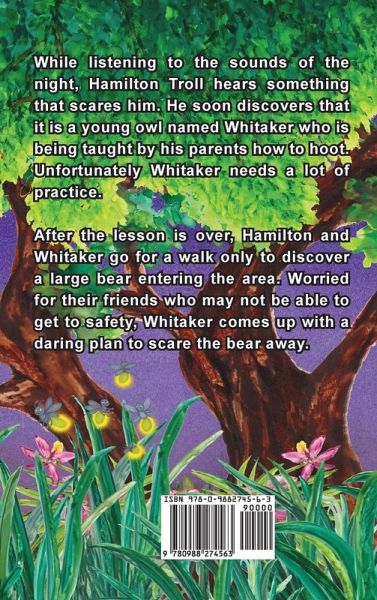 While listening to the sounds of the night, Hamilton Troll hears something that scares him. He soon discovers that it is a young owl named Whitaker who is being taught by his parents how to hoot. Unfortunately Whitaker needs a lot of practice. After the lesson is over, Hamilton and Whitaker go for a walk only to discover a large bear entering the area. Worried for their friends who may not be able to get to safety, Whitaker comes up with a daring plan to scare the bear away.