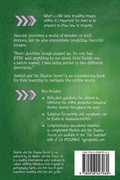 Hamish and the Shadow Secret is written to help parents, carers and teachers prepare and assist children to know what to do and how to recover from viewing explicit, harmful and inappropriate content. Kids are seeing pornography accidentally or deliberately earlier than ever before. In 2008, 14.4% of boys had viewed porn by age 12 or younger. By 2014, this had risen to 48.7%. In 2019, research indicates that 65.5% of boys have seen pornography by age 12 or younger. For girls of the same age, 8.7% had viewed it in 2014, rising to 30% in 2019. Alarmingly, clinicians are reporting cases of children aged as young as five onwards receiving therapeutic interventions. Developmentally, children have limited experiential and cognitive capacity to understand and interpret what they see. The way that children process pornography varies from child to child; however, reported feelings can range from curiosity, disgust, confusion, guilt and arousal. "I hated this, but I liked it". "I don't want to look at more, but I really want to look at more". "I think it's bad for me, but I don't really know why". Internal conflict without the knowledge of why porn is unhealthy, can quickly lead to children believing unhelpful sexual stories (scripts) about themselves and others, which are embedded in violence and inequality, shame and secrecy-unhealthy foundations for brain development and building positive relationships. Additionally, there are a growing number of children who see pornography and then act out inappropriate behaviours on other children. This provides an even greater need for all children to have comprehensive protective behaviours education that includes online safety and an awareness of how to respond to pornography. Hamish and the Shadow Secret is an educational resource for engaging children in a safe and robust conversation about the harms of pornography. Written for children aged 8-12-years, Hamish and the Shadow Secret is a valuable inclusion in every home, school and counselling setting. FURTHER INFORMATION AND RESOURCES CAN BE FOUND AT www.shadowsecret.info