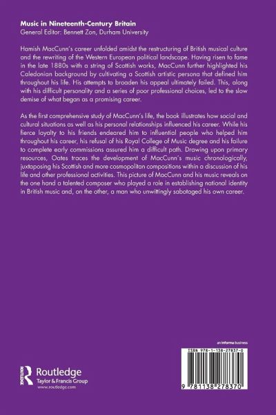 Hamish MacCunn's career unfolded amidst the restructuring of British musical culture and the rewriting of the Western European political landscape. Having risen to fame in the late 1880s with a string of Scottish works, MacCunn further highlighted his Caledonian background by cultivating a Scottish artistic persona that defined him throughout his life. His attempts to broaden his appeal ultimately failed. This, along with his difficult personality and a series of poor professional choices, led to the slow demise of what began as a promising career. As the first comprehensive study of MacCunn's life, the book illustrates how social and cultural situations as well as his personal relationships influenced his career. While his fierce loyalty to his friends endeared him to influential people who helped him throughout his career, his refusal of his Royal College of Music degree and his failure to complete early commissions assured him a difficult path. Drawing upon primary resources, Oates traces the development of MacCunn's music chronologically, juxtaposing his Scottish and more cosmopolitan compositions within a discussion of his life and other professional activities. This picture of MacCunn and his music reveals on the one hand a talented composer who played a role in establishing national identity in British music and, on the other, a man who unwittingly sabotaged his own career.
