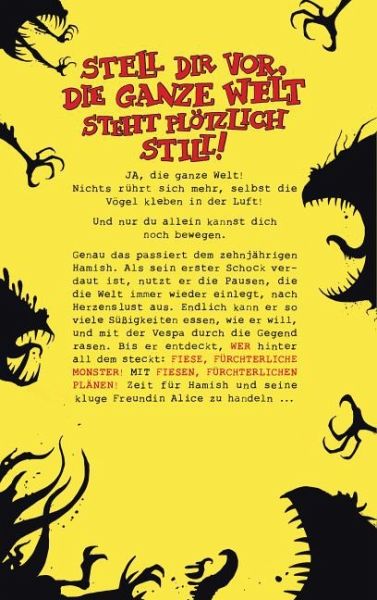 Zum Glück bleibt Hamish nicht lange alleine im Kampf gegen fiesen Weltenmonster. Ein ausgefallener und sehr schräger Trupp Jugendlicher hat sich zusammengefunden, um Zerstörungsstrupps aufzustellen, die den Aliens zeigen wollen, das diese die Rechnung ohne sie gemacht haben, dass sie falsch geschnitten sind, wenn sie meinen, sie hätten auf unserem Planet was zu sagen, aber bis dahin ist noch ein weiter Weg zurückzulegen. Bevor die Situation in Panik umschlägt, werden Erzfeinde erst einmal zum Narren gemacht und der Süßigkeitenladen ausgeraubt. Am Anfang ist es noch richtig cool, die Zeitspannen, wenn die Welt still steht, zum Ausrauben von Süßigkeitenläden zu nutzen oder üble Gegner an der Nase herumzuführen, aber nach einer Weile sehnt man sich nur noch nach Gesellschaft und Regeln. Dabei tickt unaufhörlich die Zeit und keiner weiß, wie lange der zufällig zusammengewürfelte Trupp Kinder den Weltenstoppern noch etwas entgegen zu setzen hat, die immer gefährlicher werden.