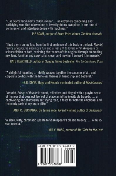 Something is rotten in the state of cybernetics. Elsinore Robotics is on the cusp of a breakthrough-the company is poised to create the first humanoid androids powered by true artificial intelligence. Their only rival, Norwegian Technologies, lost a publicly streamed contest between their flagship model, Fortinbras, and Elsinore's HAM(let) v.1. But when the first Hamlet model is found irreparably deactivated, the apparent victim of wild malware, the field of consumer cybernetics is thrown wide open. However, Hamlet v.1's memories were not entirely lost in the accident. Hamlet v.2 swears to avenge his progenitor, but is plagued by the aftereffects of integrating Old Hamlet's backup into his own neural matrix. Beset by doubts about whether his feelings are truly his own, he worries his love for his boyfriend, Horatio, is an illusion, all the while driven by a consuming need for revenge. While he has a method, there is a madness in it, and Hamlet's actions will leave no corner of Elsinore unscathed. A beat-by-beat retelling of the Shakespeare classic, Hamlet, Prince of Robots grapples with conscience, ambition, and pain, and what it means to be, or not to be, human.