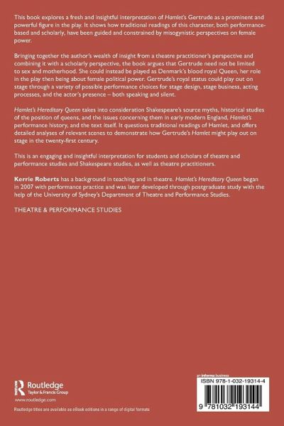 Bringing together the author's wealth of insight from a theatre practitioner's perspective and combining it with a scholarly perspective, the book argues that Gertrude need not be limited to sex and motherhood. She could instead be played as Denmark's blood royal Queen, her role in the play then being about female political power. Gertrude's royal status could play out on stage through a variety of possible performance choices for stage design, stage business, acting processes, and the actor's presence - both speaking and silent.