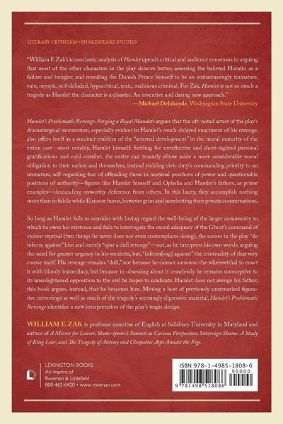 Hamlet's Problematic Revenge: Forging a Royal Mandate provides a new argument within Shakespearean studies that argues the oft-noted arrest of the play's dramaturgical momentum, especially evident in Hamlet's much delayed enactment of his revenge, represents in fact a succinct emblem of the "arrested development" in the moral maturity of the entire cast, most notably, Hamlet himself-as the unifying disclosure and tragic problem in the play. Settling for unreflective and short-sighted personal gratifications and cold comforts, they truantly elbow aside a more considerable moral obligation. Again and again, all yield this duty's commanding priority to a childishly self-regarding fear of offending those in nominal positions of power and questionable positions of authority-figures, like Ophelia and Hamlet's fathers, for instance, demanding an unworthy deference. While Hamlet fails to consider with loving regard the improved well-being of the larger community to which he owes his existence and, fails to interrogate the moral adequacy of the Ghost's command of violent reprisal (two things he never does nor even contemplates doing), "all occasions" in the play "do inform against" him and merely "spur a dull revenge"-not, as he interprets his own words, arguing the need for greater urgency in his vendetta, but, instead, to "inform against" the criminality of that very course itself. His revenge therefore can be argued as "dull," not because he cannot summon the wherewithal to enact it more bloodily, but because in obsessing about it ceaselessly he remains unreceptive to its "dull" or "unenlightened" opposition to the evil he hopes to eradicate. Hamlet does not avenge his father; this book argues that he becomes him. Amidst a wealth of previously unremarked figurative mirrorings, as well as much of the seemingly digressive material in Hamlet within Shakespearean studies, Hamlet's Problematic Revenge brings to light a new interpretation of the tragic problem in the play.