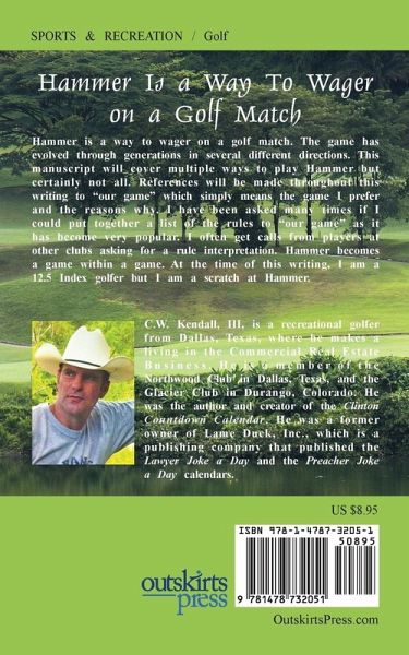 Hammer is a way to wager on a golf match. The game has evolved through generations in several different directions. This manuscript will cover multiple ways to play Hammer but certainly not all. References will be made throughout this writing to "our game" which simply means the game I prefer and the reasons why. I have been asked many times if I could put together a list of the rules to "our game" as it has become very popular. I often get calls from players at other clubs asking for a rule interpretation. Hammer becomes a game within a game. At the time of this writing, I am a 12.5 Index golfer but I am a scratch at Hammer.