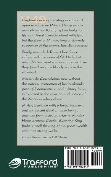 England once again staggers toward open warfare as Prince Henry grows ever stronger. King Stephen looks to local loyal Earls, but the Earl of Malton,a staunch supporter of the crown, has disappeared. Badly wounded, Robert found refuge with the nuns of St. Hilds, but when Maken sent soldiers to guard him, they found only his bloody rags in the bed. Maken de Courtelaine, without the natural protection of her husband's powerful connections & military fame, is exposed to the avarice and hatred of Norman ruling class. A rich Earldom, a large treasury, and an absent Earl soon brings enemies from every quarter to plunder Hammerstone Castle. Even the King thinks of great wealth within its strong walls.