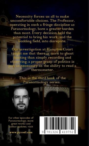 Necessity forces us all to make uncomfortable choices. The Professor, operating in such a fringe discipline as Paranormology, bore a greater burden than most. Every decision held the potential to bring his work, and the budding field, into disrepute. Our investigation at Hampton Court taught me that there is more to ghost hunting than simply recording and observing; a proper grasp of politics is just as necessary as the ability to read a thermometer. This is the third book of the Paranormology series.