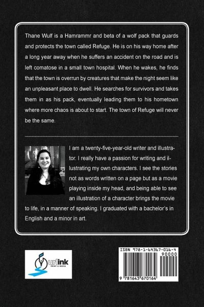 Thane Wulf is a Hamrammr and beta of a wolf pack that guards and protects the town called Refuge. He is on his way home after a long year away when he suffers an accident on the road and is left comatose in a small town hospital. When he wakes, he finds that the town is overrun by creatures that make the night seem like an unpleasant place to dwell. He searches for survivors and takes them in as his pack, eventually leading them to his hometown where more chaos is about to start. The town of Refuge will never be the same.