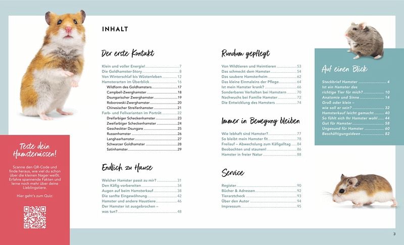 Expertenwissen und praktische Tipps: Der Ratgeber bietet praxisnahe Tipps zu Auswahl, Pflege und Notfällen sowie ein Online-Quiz, um Ihr Hamsterwissen zu testen und zu erweitern.