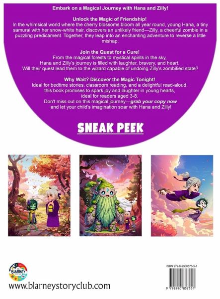 Embark on a Magical Journey with Hana and Zilly! Unlock the Magic of Friendship! In the whimsical world where the cherry blossoms bloom all year round, young Hana, the tiny samurai with her snow-white hair, discovers an unlikely friend-Zilly, a cheerful zombie in a puzzling predicament. Together, they leap into an enchanting adventure to reverse a mishap. Join the Quest for a Cure! From the magical forests to mystical spirits in the sky, Hana and Zilly's journey is filled with laughter, bravery, and heart. Will their quest lead them to the wizard capable of undoing Zilly's zombified state? A Spellbinding Story for Young Readers! With each turn of the page, "Hana the Zombie's Friend" casts a spell of joy and discovery. Perfect for parents seeking a captivating read to share with their children, this tale weaves humor, adventure, and the timeless lessons of trust and friendship. Why Wait? Discover the Magic Tonight! Ideal for bedtime stories, classroom reading, and a delightful read-aloud, this book promises to spark joy and laughter in young hearts. Don't miss out on this magical journey-grab your copy now and let your child's imagination soar with Hana and Zilly!