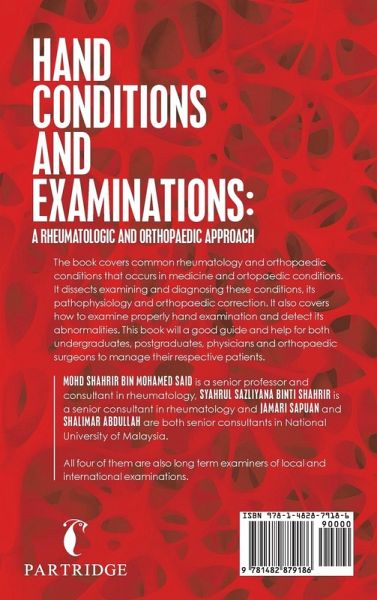 The book covers common rheumatology and orthopaedic conditions that occurs in medicine and ortopaedic conditions. It dissects examining and diagnosing these conditions, its pathophysiology and orthopaedic correction. It also covers how to examine properly hand examination and detect its abnormalities. This book will a good guide and help for both undergraduates, postgraduates, physicians and orthopaedic surgeons to manage their respective patients.