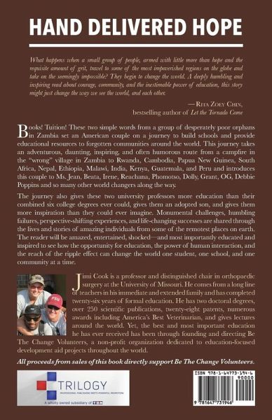 Books! Tuition! These two simple words from a group of desperately poor orphans in Zambia set an American couple on a journey to build schools and provide educational resources to forgotten communities around the world. This journey takes an adventurous, daunting, inspiring, and often humorous route from a campfire in the "wrong" village in Zambia to Rwanda, Cambodia, Papua New Guinea, South Africa, Nepal, Ethiopia, Malawi, India, Kenya, Guatemala, and Peru and introduces this couple to Ms. Jean, Beata, Irene, Reachana, Phomotso, Dolly, Grant, OG, Debbie Poppins and so many other world changers along the way. The journey also gives these two university professors more education than their combined six college degrees ever could, gives them an adopted son, and gives them more inspiration than they could ever imagine. Monumental challenges, humbling failures, perspective-shifting experiences, and life-changing successes are shared through the lives and stories of amazing individuals from some of the remotest places on earth. The reader will be amazed, entertained, shocked—and most importantly educated and inspired to see how the opportunity for education, the power of human interaction, and the reach of the ripple effect can change the world one student, one school, and one community at a time.