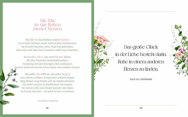 Ein einzigartiges Hochzeitsgeschenk für den perfekten Start ins Eheglück!Die schönsten Gedichte und Gedanken über die Liebe und das Glück zu zweitHochwertig veredelt und liebevoll illustriert von Julia Borchers