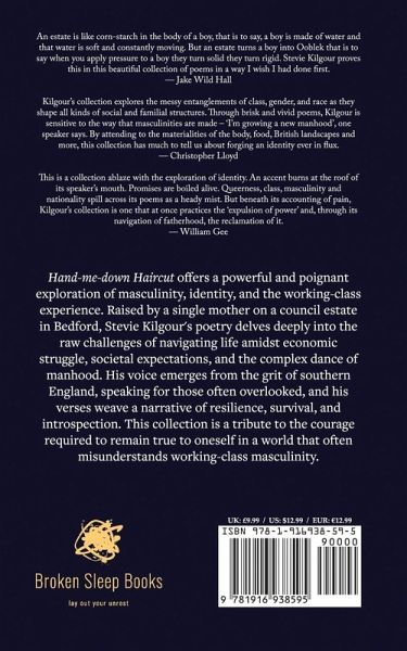 Hand-Me-Down Haircut offers a powerful and poignant exploration of masculinity, identity, and the working-class experience. Raised by a single mother on a council estate in Bedford, Stevie Kilgour's poetry delves deeply into the raw challenges of navigating life amidst economic struggle, societal expectations, and the complex dance of manhood. His voice emerges from the grit of southern England, speaking for those often overlooked, and his verses weave a narrative of resilience, survival, and introspection. This collection is a tribute to the courage required to remain true to oneself in a world that often misunderstands working-class masculinity.