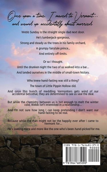Once upon a time, I moved to Vermont... and wound up accidentally sort of married. Webb Sunday is the straight single dad next door. He's lumberjack-gorgeous, Strong and steady as the trees in his family orchard, A grumpy fairytale prince... And entirely off-limits. Or so I thought. Until the drunken night the two of us walked into a bar... And landed ourselves in the middle of small-town history. Who knew hand-fasting was still a thing? The town of Little Pippin Hollow did. And once this bunch of meddling Vermonters gets wind of our accidental betrothal, they are determined to see us seal the deal. But while the chemistry between us is hot enough to melt the winter cold, Webb isn't interested in a relationship... And I'm not sure how long I can keep pretending I don't want our hand-fasting to be real. Because while the man might not be the happily ever after I came to Vermont for... He's looking more and more like the one who's been hand-picked for me.