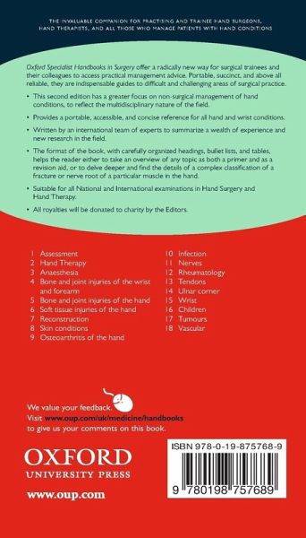 Fully revised from the previous edition, the Oxford Specialist Handbook of Hand Surgery 2nd edition has a greater focus on non-surgical management of hand conditions, whilst bringing surgical guidelines fully up to date.
