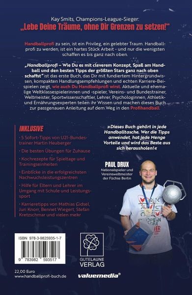 »Dieses Buch gehört in jede Handballtasche. Wer die Tipps anwendet, hat jede Menge Vorteile und wird das Beste aus sich herausholen!« (Paul Drux, Nationalspieler und Vereinsweltmeister mit den Füchsen Berlin)