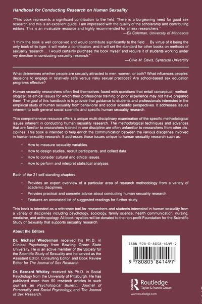 "This book represents a significant contribution to the field. There is a burgeoning need for good sex research, and this is an excellent guide. I am impressed with the quality of the scholarship and contributing editors. This is an invaluable resource and highly recommended for all sex researchers."