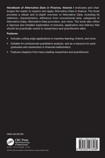 This book motivates and challenges the reader to explore and apply Alternative Data in finance. It provides a robust and in-depth overview of Alternative Data, including its definition, characteristics, difference from conventional data, categories of Alternative Data, Alternative Data providers, and more.