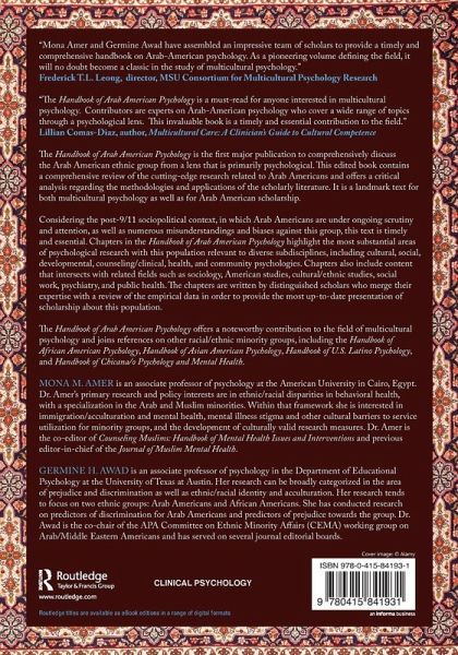 The Handbook of Arab American Psychology is the first major publication to comprehensively discuss the Arab American ethnic group from a lens that is primarily psychological. This edited book contains a comprehensive review of the cutting-edge research related to Arab Americans and offers a critical analysis regarding the methodologies and applications of the scholarly literature. It is a landmark text for both multicultural psychology as well as for Arab American scholarship. Considering the post 9/11 socio-political context in which Arab Americans are under ongoing scrutiny and attention, as well as numerous misunderstandings and biases against this group, this text is timely and essential. Chapters in the Handbook of Arab American Psychology highlight the most substantial areas of psychological research with this population, relevant to diverse sub-disciplines including cultural, social, developmental, counseling/clinical, health, and community psychologies. Chapters also include content that intersect with related fields such as sociology, American studies, cultural/ethnic studies, social work, and public health. The chapters are written by distinguished scholars who merge their expertise with a review of the empirical data in order to provide the most updated presentation of scholarship about this population. The Handbook of Arab American Psychology offers a noteworthy contribution to the field of multicultural psychology and joins references on other racial/ethnic minority groups, including Handbook of African American Psychology, Handbook of Asian American Psychology, Handbook of U.S. Latino Psychology, and The Handbook of Chicana/o Psychology and Mental Health.
