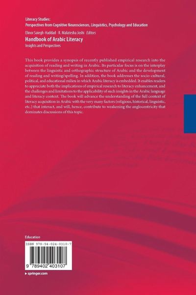 "The aim of the book is to explore literacy development in Arabic from several perspectives. ... This volume is a helpful guide to researchers of not only Arabic literacy and Diglossia, but also of sociolinguistics, learning disorders, and especially education. It aspires to achieve a better understanding of the consequences of the diglossic nature of Arabic and find solutions to existing problems. ... The language used is easy-to-follow, and relevant tables, diagrams, and charts are provided where needed." (Kariema El Touny, The Linguist List, March, 2015)