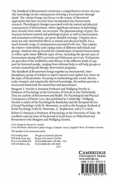 The Handbook of Bereavement constitutes a comprehensive review of scientific knowledge on the consequences of losing a loved person through death. The volume brings into focus a wide variety of theoretical approaches that have recently been incorporated into bereavement research.