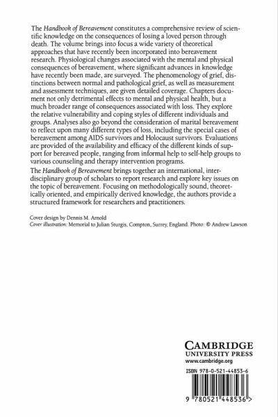 The Handbook of Bereavement constitutes a comprehensive review of scientific knowledge on the consequences of losing a loved person through death. The volume brings into focus a wide variety of theoretical approaches that have been incorporated into bereavement research.