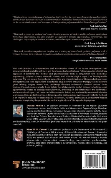 This book presents a comprehensive and authoritative review of the recent developments and advances in biodegradable polymers and their biomedical applications.