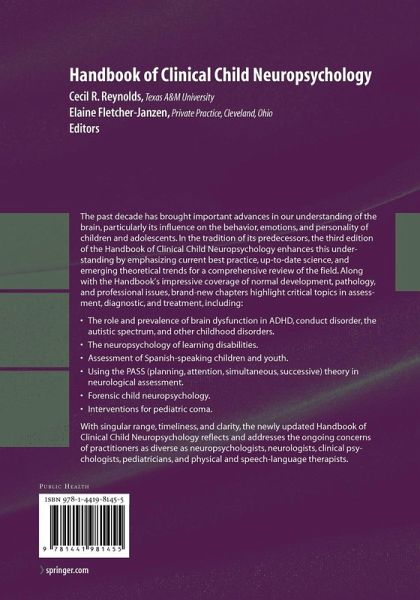 From the reviews of the third edition: "A useful, valid attempt to accomplish an integration of topics in an emerging field, representing both its diversity and its divergency." (Contemporary Psychology, 43:9 (1998) "Reynolds ... and Fletcher-Janzen, who works in private practice, offer a handbook containing 32 chapters for psychologists, neuropsychologists, neurologists, pediatricians, and physical and speech-language therapists on clinical child neuropsychology. ... chapters cover the history of the field, child development, malformations, intervention, neuropsychological diagnosis, and special topics such as coping and aspects associated with HIV." (SciTech Book News, March, 2009) "This book reviews the field from the necessary training to specific disorders to treatment and rehabilitation. ... The audience is primarily clinical child neuropsychologists, but students of psychology and neuropsychology would also benefit from the comprehensive coverage. ... This handbook is filled with an abundance of useful information and guidance in the practice of child neuropsychology. Readers will find it a welcome addition to their library ... ." (Christopher J. Graver, Doody's Review Service, December, 2009)