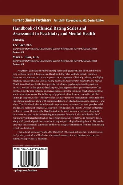 Focused and immensely useful, the Handbook of Clinical Rating Scales and Assessment in Psychiatry and Mental Health is an invaluable resource for all clinicians who care for patients with psychiatric disorders.