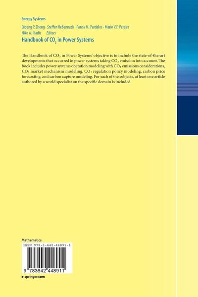 The Handbook of CO2in Power Systems' objective is to include the state-of-the-art developments that occurred in power systems taking CO2emission into account. The book includes power systems operation modeling with CO2emissions considerations, CO2market mechanism modeling, CO2regulation policy modeling, carbon price forecasting, and carbon capture modeling. For each of the subjects, at least one article authored by a world specialist on the specific domain is included.