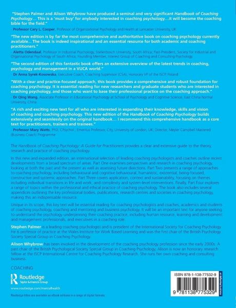 "A rich and exciting new text for all who are interested in expanding their knowledge, skills and vision of coaching and coaching psychology - This new edition of The Handbook of Coaching Psychology: A Guide for Practitioners, builds extensively and seamlessly on the original handbook. Retaining all that was excellent in the original it shares yet further breadth and depth of knowledge and understanding of theory, research and practice. In addition, there is a section focussing on those often tricky professional and ethical issues faced by practitioners. I recommend this comprehensive handbook as a core text for practitioners, trainers and trainees." - Professor Mary Watts, PhD, CPsychol.; Emeritus Professor, City, University of London, UK; Director, Meyler Campbell Mastered (Business Coach) Programme