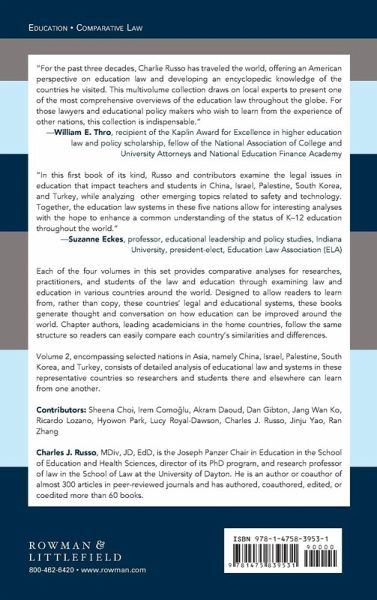 Handbook of Comparative Educational Law: Selected Asian Nations, Volume 2 provides detailed analysis of education law in China, Israel, Palestine, South Korea, and Turkey, so researchers and students there and elsewhere can learn from one another.