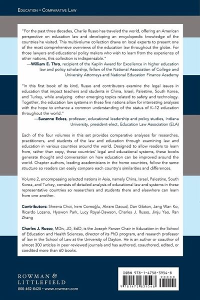 Handbook of Comparative Educational Law: Selected Asian Nations, Volume 2 provides detailed analysis of education law in China, Israel, Palestine, South Korea, and Turkey, so researchers and students there and elsewhere can learn from one another.