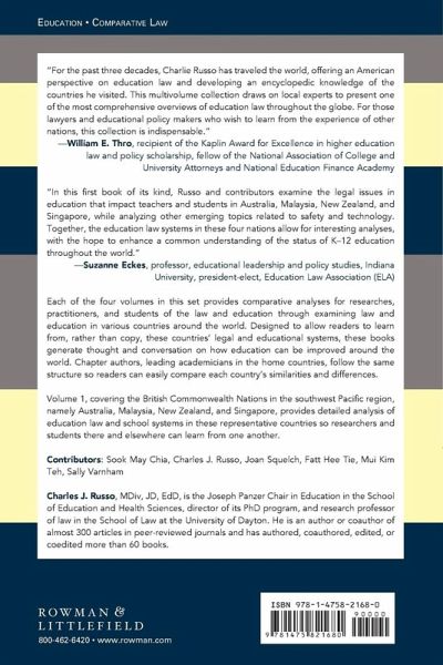 Handbook of Comparative Educational Law: British Commonwealth Nations, Volume 1 provides detailed analysis of education law in Australia, Malaysia, New Zealand and Singapore, so that researchers and others can learn from one another.