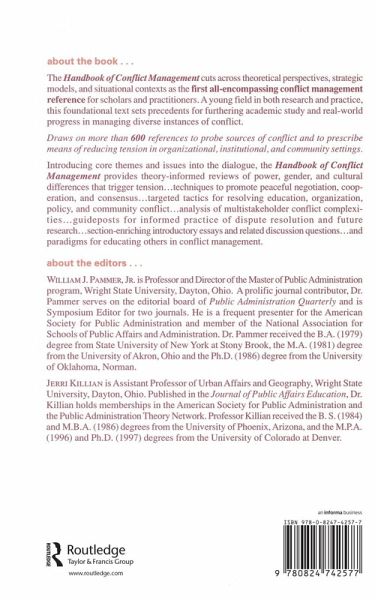 The Handbook of Conflict Management cuts across theoretical perspectives, strategic models, and situational contexts as the first all-encompassing conflict management reference. A young field in both research and practice, this foundational text sets precedents for furthering academic study and real-world progress in managing diverse instances of conflict. It draws on more than 600 references to probe sources of conflict and to prescribe means of reducing tension in organizational, institutional, and community settings. Introducing core themes and issues into the dialogue, the handbook provides techniques to promote peaceful negotiation, cooperation, and consensus.