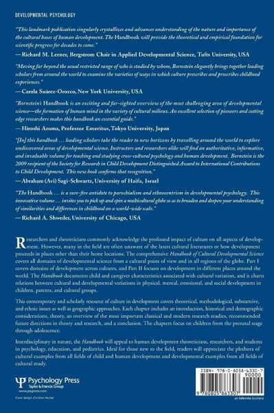 Researchers and theoreticians commonly acknowledge the profound impact of culture on all aspects of development. However, many in the field are often unaware of the latest cultural literatures or how development proceeds in places other than their home locations. This comprehensive handbook covers all domains of developmental science from a cultural point of view and in all regions of the globe. Part 1 covers domains of development across cultures, and Part 2 focuses on development in different places around the world. The Handbook documents child and caregiver characteristics associated with cultural variation, and it charts relations between cultural and developmental variations in physical, mental, emotional, and social development in children, parents, and cultural groups. This contemporary and scholarly resource of culture in development covers theoretical, methodological, substantive, and ethnic issues as well as geographic approaches. Each chapter includes an introduction, historical and demographic considerations, theory, an overview of the most important classical and modern research studies, recommended future directions in theory and research, and a conclusion. The chapters focus on children from the prenatal stage through adolescence. Interdisciplinary in nature, the Handbook will appeal to human development theoreticians, researchers, and students in psychology, education, and pediatrics. Ideal for those new to the field, readers will appreciate the plethora of cultural examples from all fields of child and human development and developmental examples from all fields of cultural study.