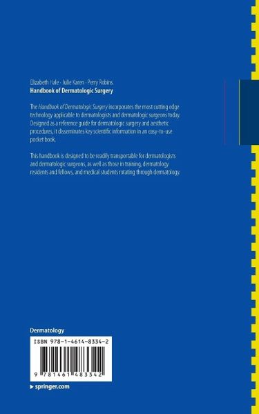 The Handbook of Dermatologic Surgery incorporates the most cutting edge technology applicable to dermatologists and dermatologic surgeons today. Designed as a reference guide for dermatologic surgery and aesthetic procedures, it disseminates key scientific information in an easy-to-use pocket book.