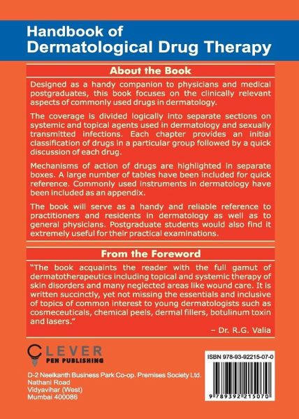 About the Book Designed as a handy companion to physicians and medical postgraduates, this book focuses on the clinically relevant aspects of commonly used drugs in dermatology. The coverage is divided logically into separate sections on systemic and topical agents used in dermatology and sexually transmitted infections. Each chapter provides an initial classification of drugs in a particular group followed by a quick discussion of each drug. Mechanisms of action of drugs are highlighted in separate boxes. A large number of tables have been included for quick reference. Commonly used instruments in dermatology have been included as an appendix. The book will serve as a handy and reliable reference to practitioners and residents in dermatology as well as to general physicians. Postgraduate students would also find it extremely useful for their practical examinations.