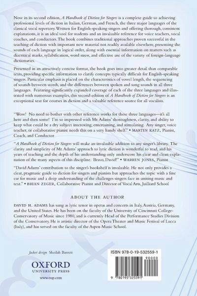 Now in its second edition, A Handbook of Diction for Singers is a complete guide to achieving professional levels of diction in Italian, German, and French, the three major languages of the classical vocal repertory. Written for English-speaking singers and offering thorough, consistent explanations, it is an ideal tool for students and an invaluable reference for voice teachers, vocal coaches, and conductors. The book combines traditional approaches proven successful in the teaching of diction with important new material not readily available elsewhere, presenting the sounds of each language in logical order, along with essential information on matters such as diacritical marks, syllabification, word stress, and effective use of the variety of foreign-language dictionaries. Presented in an attractively concise format, the book goes into greater detail than comparable texts, providing specific information to clarify concepts typically difficult for English-speaking singers. Particular emphasis is placed on the characteristics of vowel length, the sequencing of sounds between words, as well as the differences between spoken and sung sounds in all three languages. Featuring significantly expanded coverage of each of the three languages and illustrated with numerous examples, this second edition of A Handbook of Diction for Singers is an exceptional text for courses in diction and a valuable reference source for all vocalists.